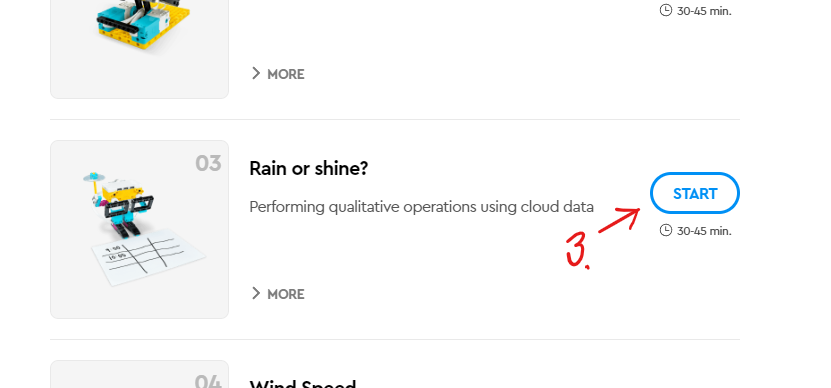 Dnes si zkusíme jednu z oficiálních lekcí z LEGO Spike. Po spuštění vybereme tlačítko Units, kde vybereme Life Hacks a zde Rain or shine.